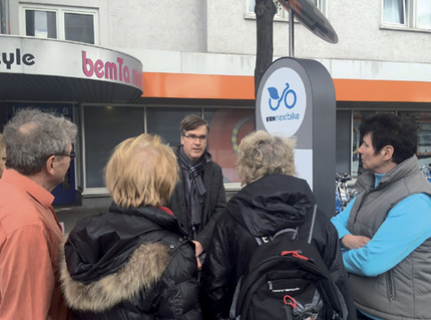 Wir zeigen, wie die Infrastruktur am Berliner Platz funktioniert, z.B. bei Schulungen an Fahrkartenautomaten mit unserem Partner Rhein-Neckar-Verkehr rnv oder an den Verleihstationen der Leihfahrräder von Nextbike.